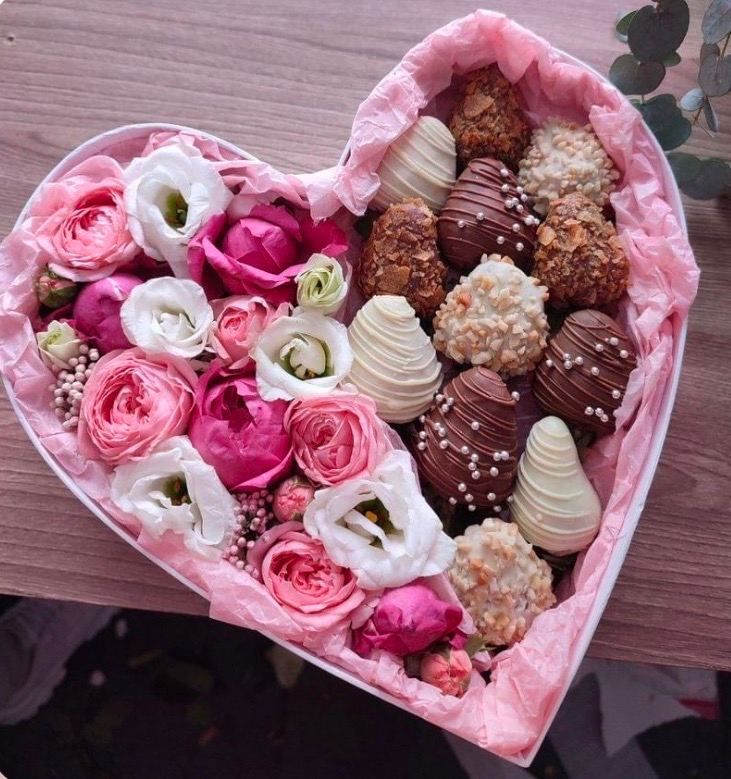 Цветы, шары и вкусности ко дню Всех влюбленных